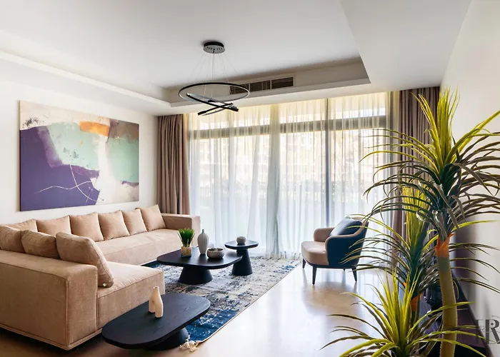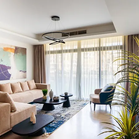 Staying at the 150 m² Easy Rental Serviced Apartment In Cfc New Cairo, guests can reach the Dancing Fountain, situated 17 minutes' walk away. This 3-bedroom apartment offers a terrace with views of the garden.